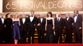 CANNES, FRANCE – MAY 25: (R-L) Producer Paulo Branco, writer Don DeLillo, actors Paul Giamatti, Juliet Binoche, Robert Pattinson, director David Cronenberg, actresses Sarah Gadon, Emily Hampshire, and producer Martin Katz attend the “Cosmopolis” premiere during the 65th Annual Cannes Film Festival at Palais des Festivals on May 25, 2012 in Cannes, France. (Photo by Andreas Rentz/Getty Images)
